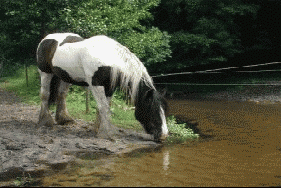 ..und achtet darauf, dass er die Hufe nicht ins Wasser setzt weil er fürchterlich wasserscheu ist.