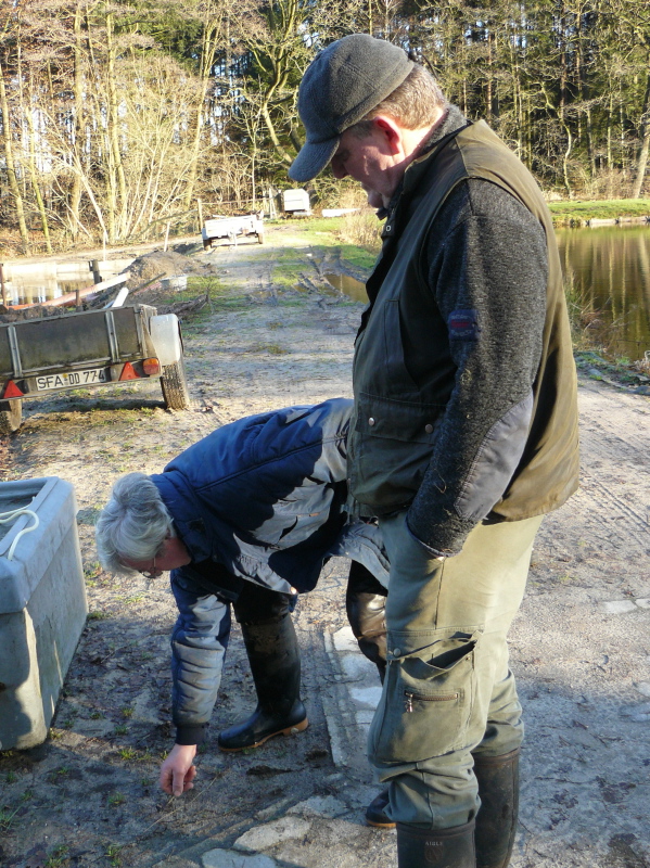 Wie man den Aalfang umbauen muss um ein bewegliches Schott zu installieren. Die beiden hatten gestern die Eichenbohlen nicht aus dem Aalfang bekommen um den Hahnenbach zu befreien.