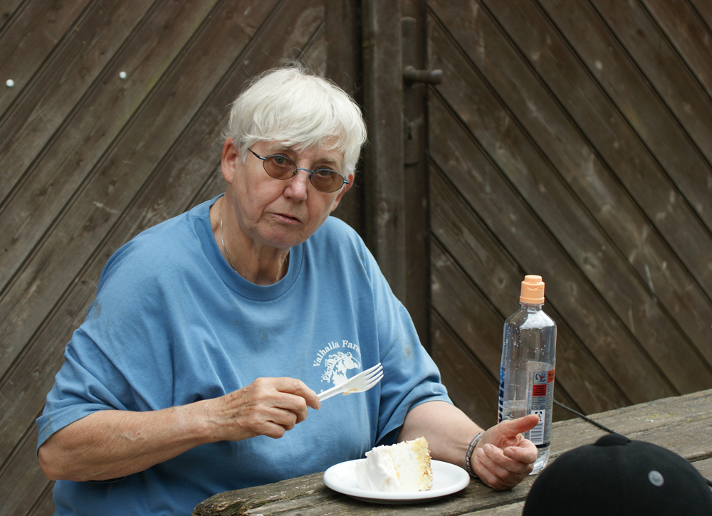 isst in Ruhe ihren Geburtstagskuchen